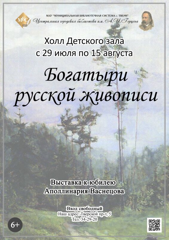 29 июля в Центральной библиотеке имени Герцена откроется выставка «Богатыри русской живописи», приуроченная к 155-летию художника Аполлинария Михайловича Васнецова.