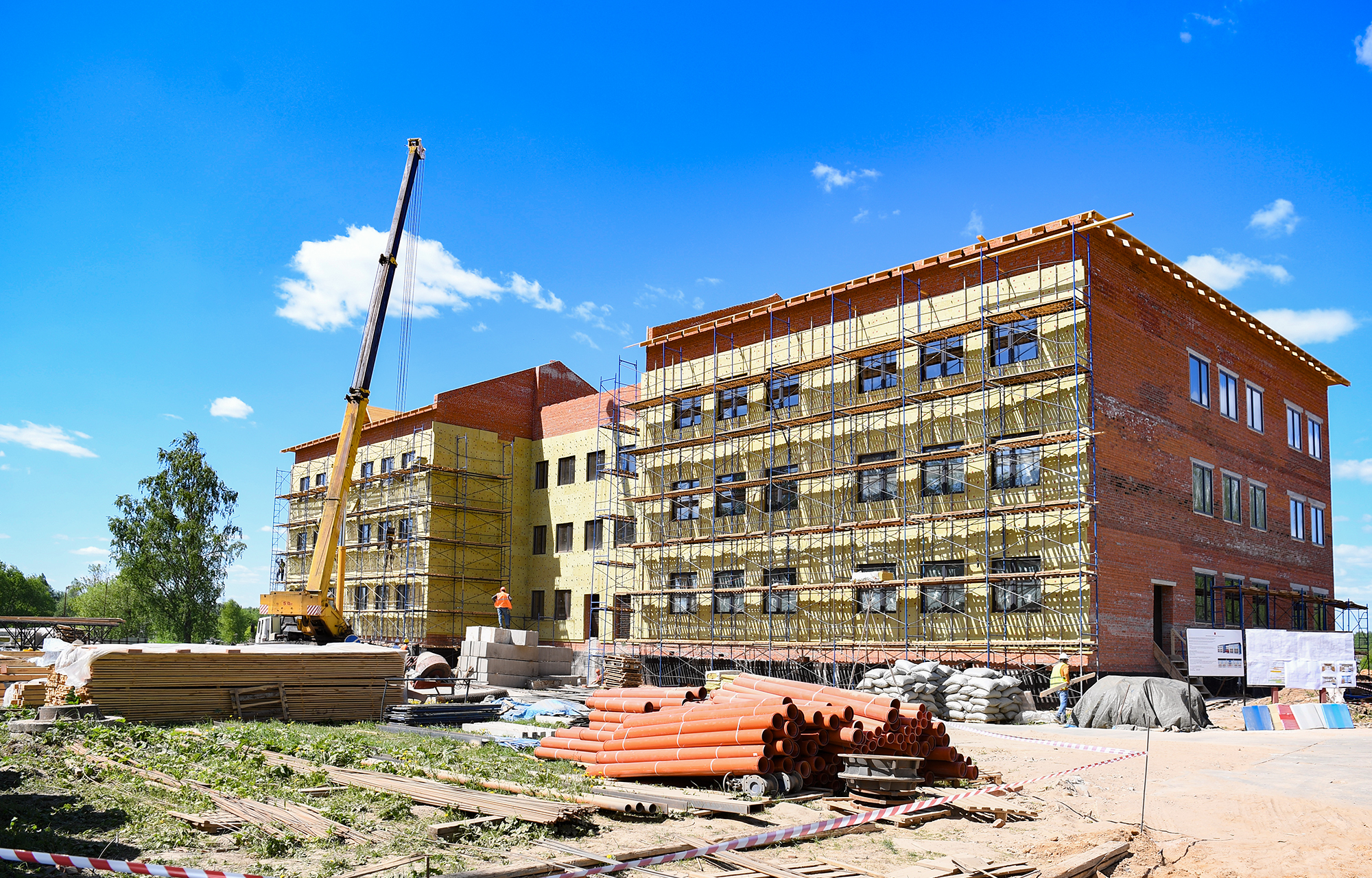 Сейчас возводится здание школы, идет устройство кровли и перегородок, прокладка инженерных сетей. Строительство ведется по президентскому нацпроекту «Образование».